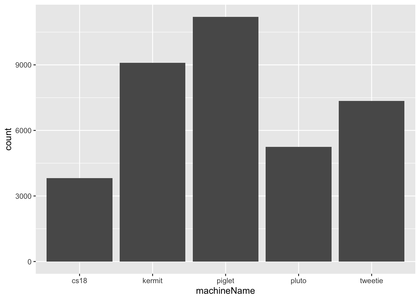 downloads, aes(x=machineName)) + # categorical variable on x-axis