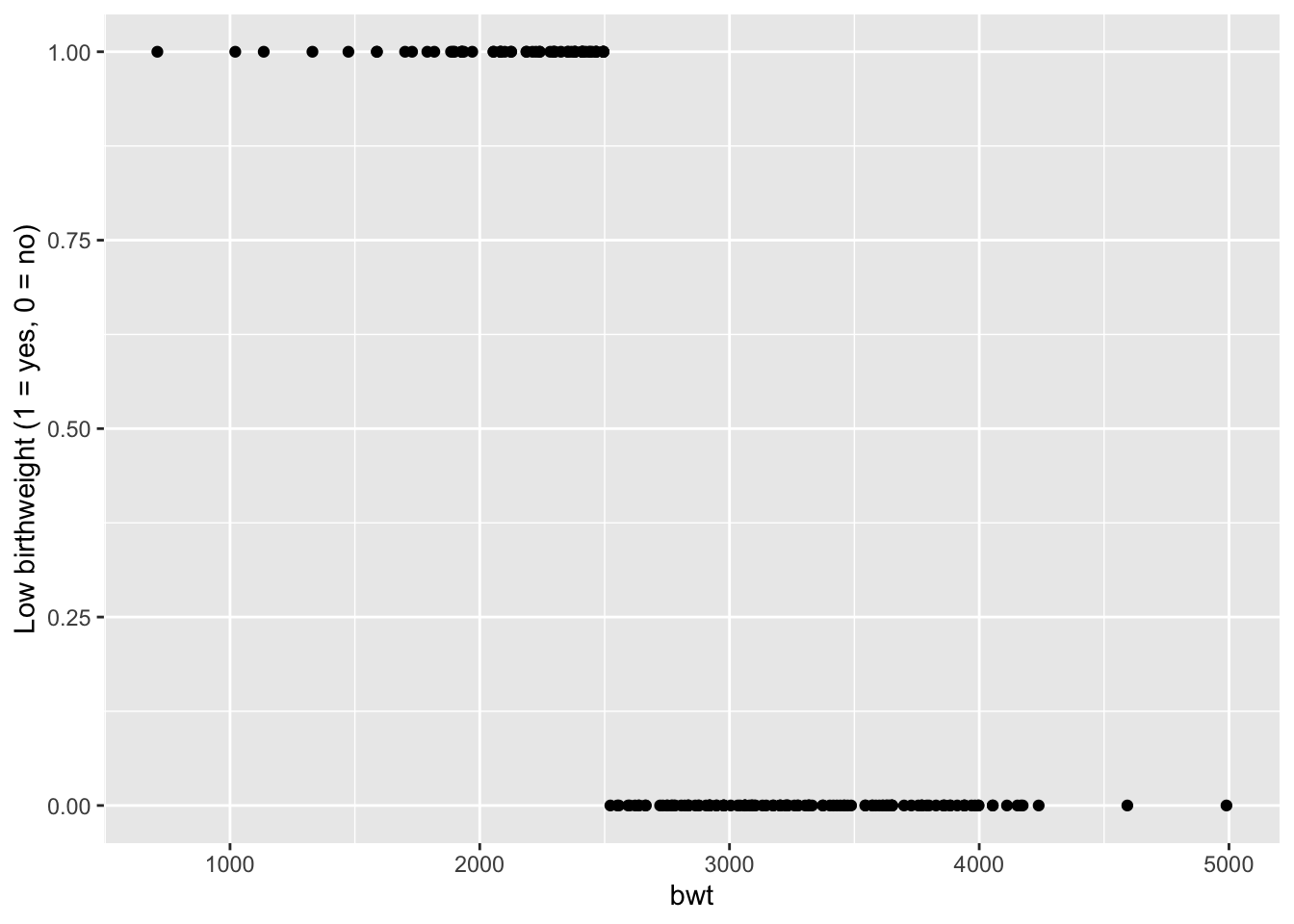 Imagine the actual birth weight bwt was not recorded, but we still want to know whether the birth weight was low.