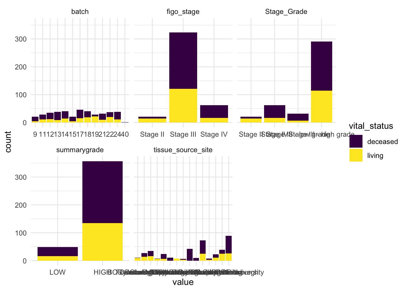 # batch <fct>, vital_status <fct>, Stage_Grade <fct>,